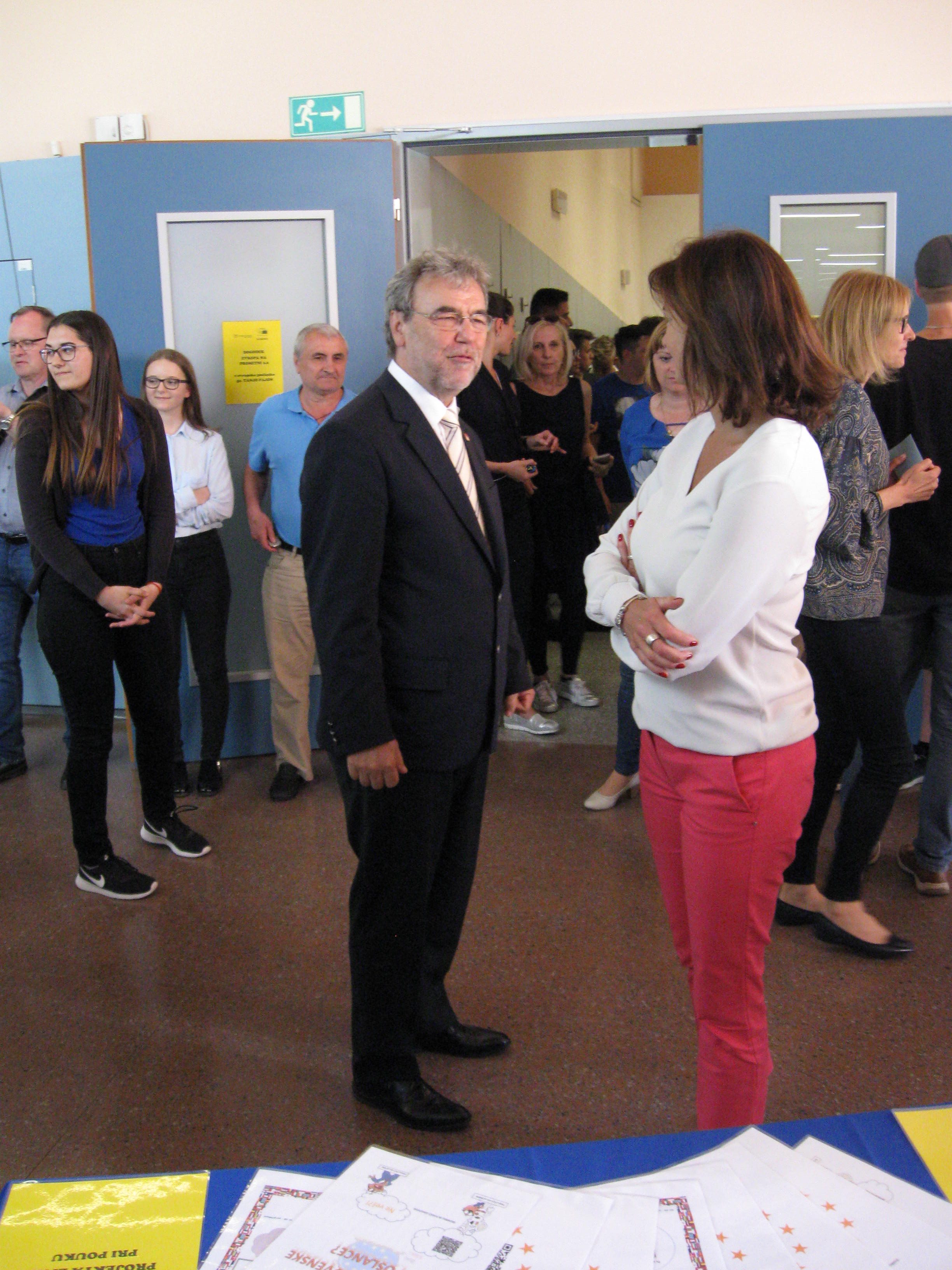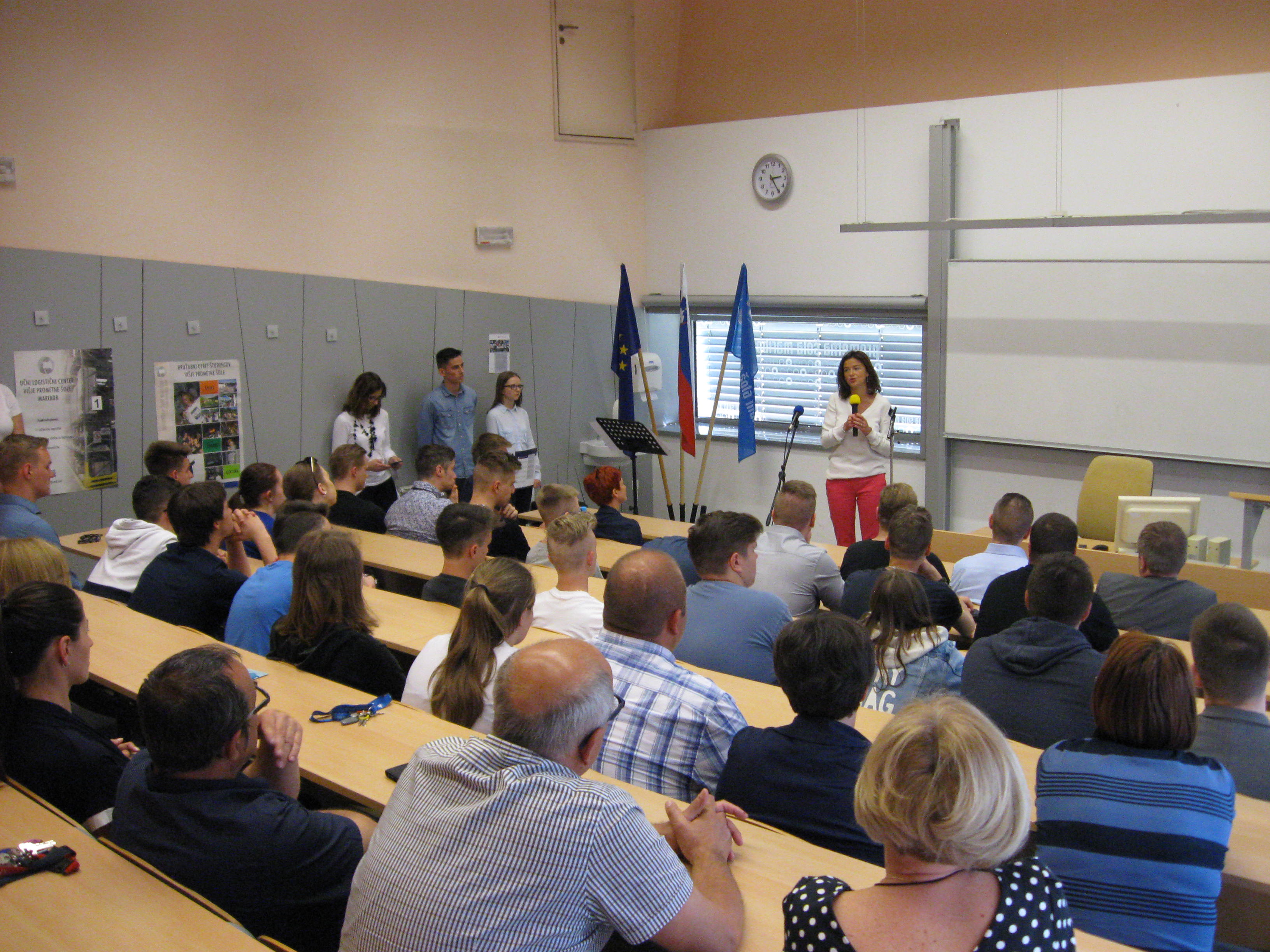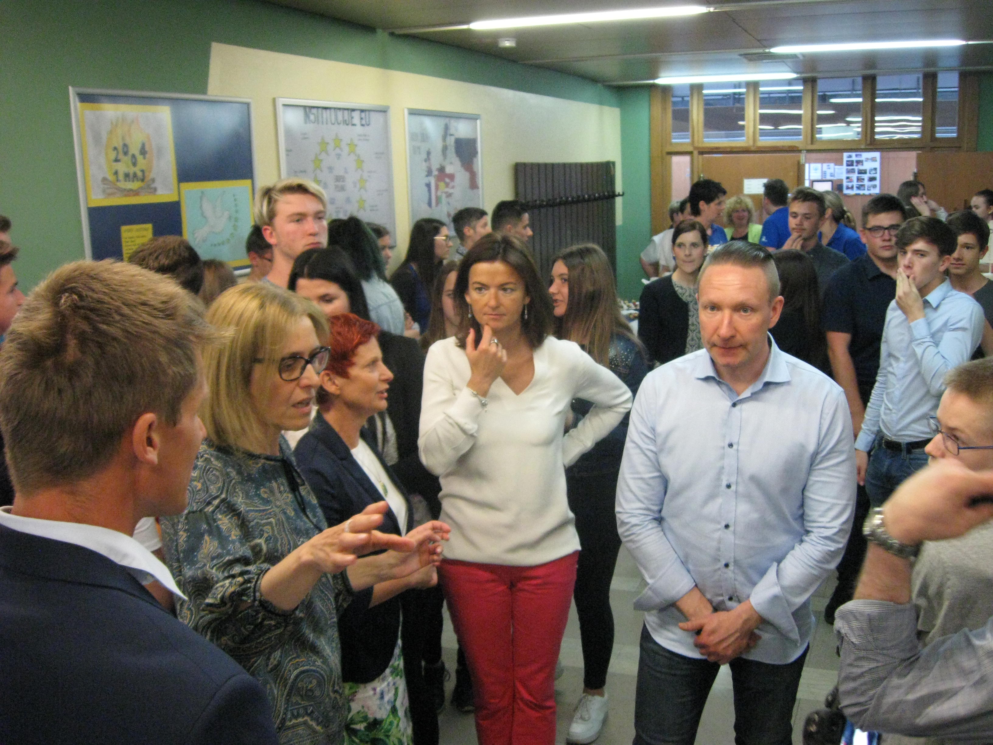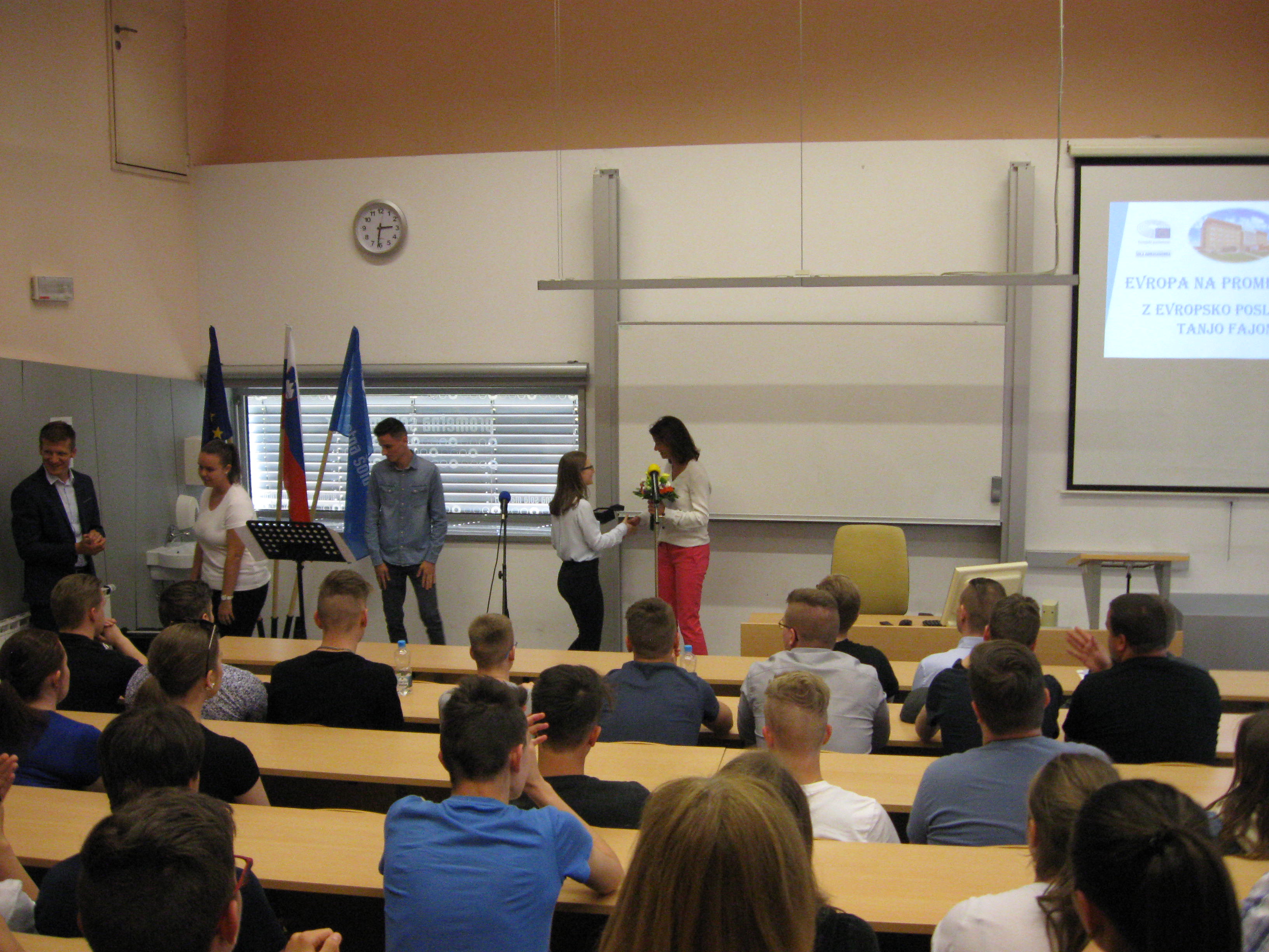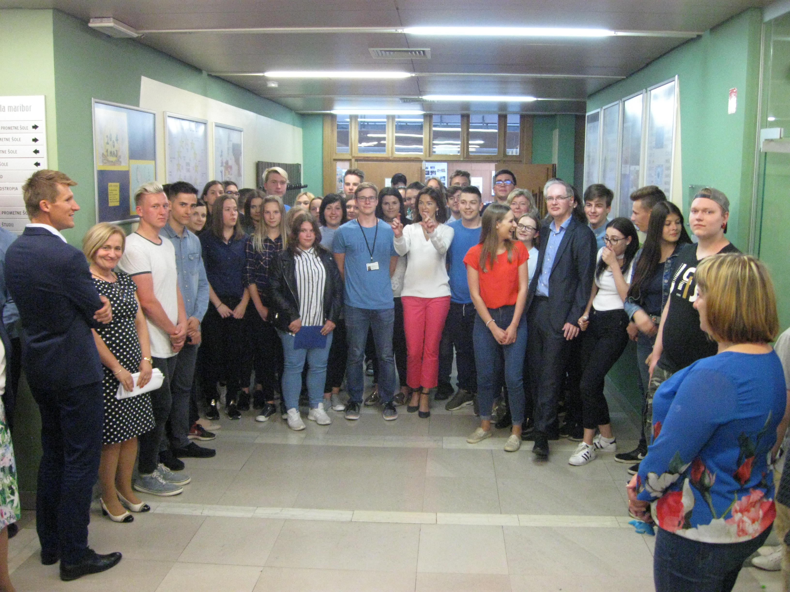 Letošnje praznovanje dneva Evrope smo obeležili z obiskom evropske poslanke Tanje Fajon, ki je dijakom predstavila svoje delo v vlogi evropske poslanke ter jih navdušila, naj spremljajo možnosti in priložnosti, ki jih ponuja Evropska unija in jih tudi izkoristijo. Na praznovanju so se nam zraven osrednje gostje pridružili še podžupan Mestne občine Maribor Zdravko Luketič, zunanji ocenjevalec v projektu EPAS dr. Damjan Lajh, predstavniki partnerskih podjetij ter dijaki in mentorja iz Finske, ki jih gostimo v projektu Erasmus+.