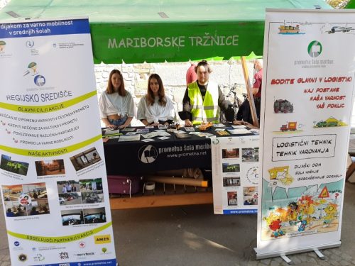 Na prireditvenem prostoru smo se predstavili tudi na stojnici, na kateri smo predstavljali šolo in še posebej projekt varne mobilnosti Dijaki dijakom za varno mobilnost v srednjih šolah, pri katerem imamo tudi vlogo regijskega središča. Osnovna naloga projekta je, da dijaki dijake ozaveščajo o pomembnosti varne mobilnosti.