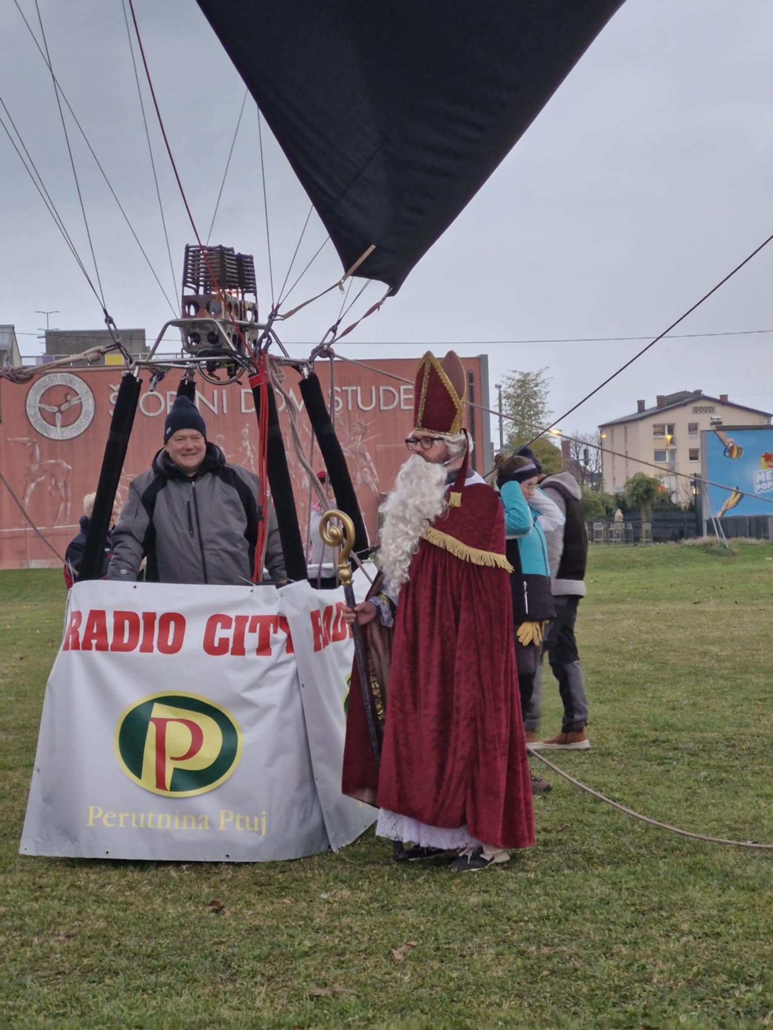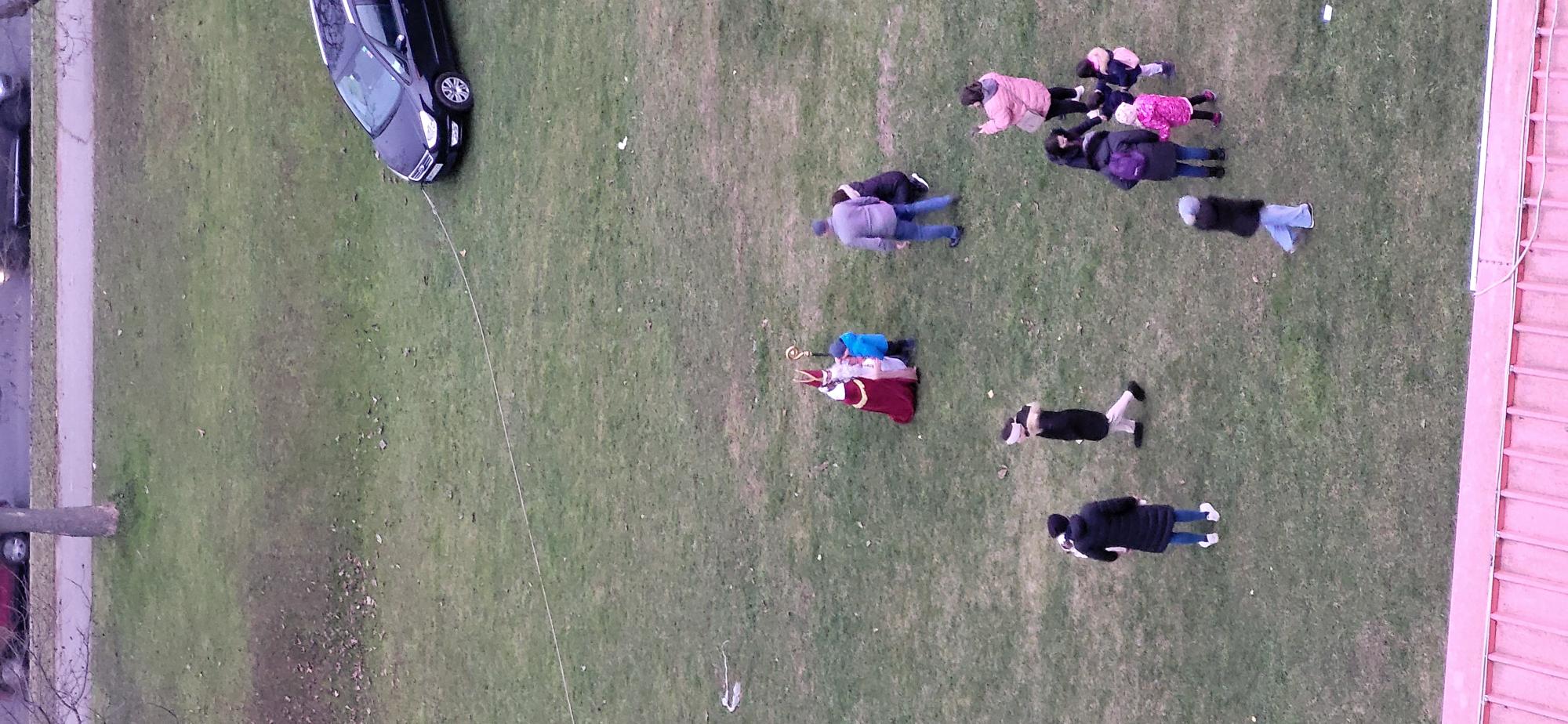 Včeraj je naše dijake in učitelje presenetil prav poseben obisk Miklavža! Namesto po cesti je k nam priletel z balonom in nežno pristal kar na naši zelenici, kjer smo ga z navdušenjem pričakali. V košari na srečo ni bilo prostora za parklje.