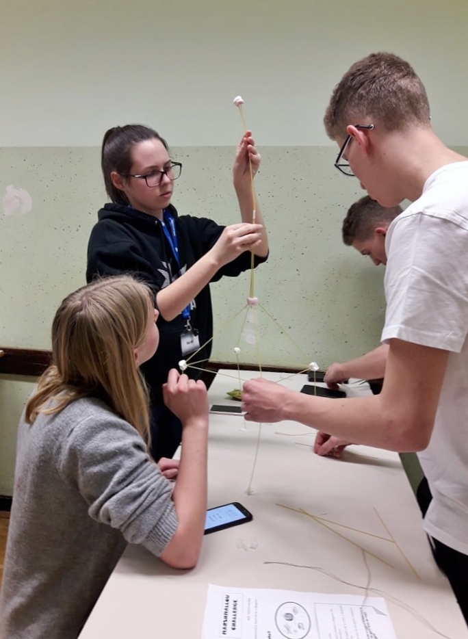 Druženje smo začeli v petek popoldan in za devetošolce najprej pripravili spoznavne igre. Sledile so različne delavnice: učenci so v šolskem fitnesu spoznali osnove samoobrambe, v računalniški učilnici so si izdelali in natisnili priponke z imeni, v delavnici za spodbujanje timskega dela so se pomerili v izdelavi najvišje samostoječe konstrukcije iz špagetov, mnoge je pritegnila vadba streljanja na šolskem strelišču, celotno dogajanje pa je s fotoaparatom spremljala tudi novinarska ekipa. Po večerji so devetošolci v šolski knjižnici prisluhnili še zanimivemu potopisnemu predavanju o Južni Ameriki, potem pa so sledile zabavne družabne igre.