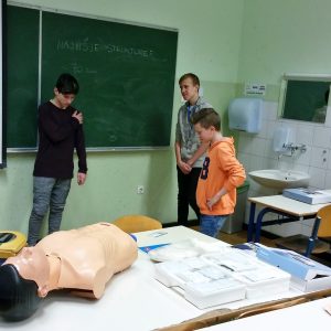 Sobotno dopoldne je prav tako postreglo z zanimivimi delavnicami v šoli in na terenu. V šolski jedilnici so devetošolci v ustvarjalni delavnici barvali pirhe z različnimi tehnikami, v delavnici prve pomoči pa so se seznanili s temeljnimi postopki oživljanja in uporabo defibrilatorja. Pestro je bilo tudi v delavnici droge in alkohol; po teoretičnem uvodu so devetošolci z navdušenjem preizkusili še simulacijska očala (za alkohol, droge in utrujenost). Vsaka skupina se je podala tudi na teren – na bližnjem mostu so sami preizkusili merjenje hitrosti z radarjem. Dogajalo pa se je tudi v fitnesu, kjer so spoznali osnovne strokovne prijeme varnostnih služb, nato pa so te tehnike preizkusili še sami. Delavnice so vodili naši profesorji in zunanji sodelavci.