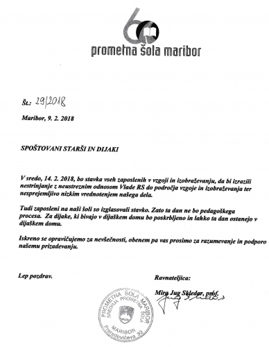 Stavka – obvestilo za starše
