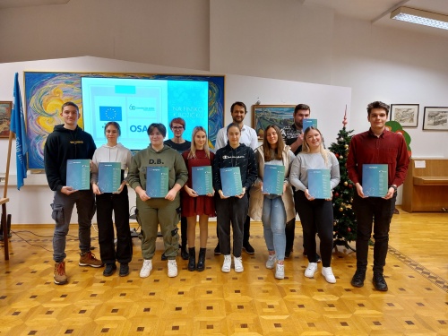 Na prireditvi sta koordinatorica projekta Danijela Kačinari in ravnateljica Srednje prometne šole Mira Jug Skledar dijakom in učiteljema slovesno izročili potrdila Europass mobilnost.