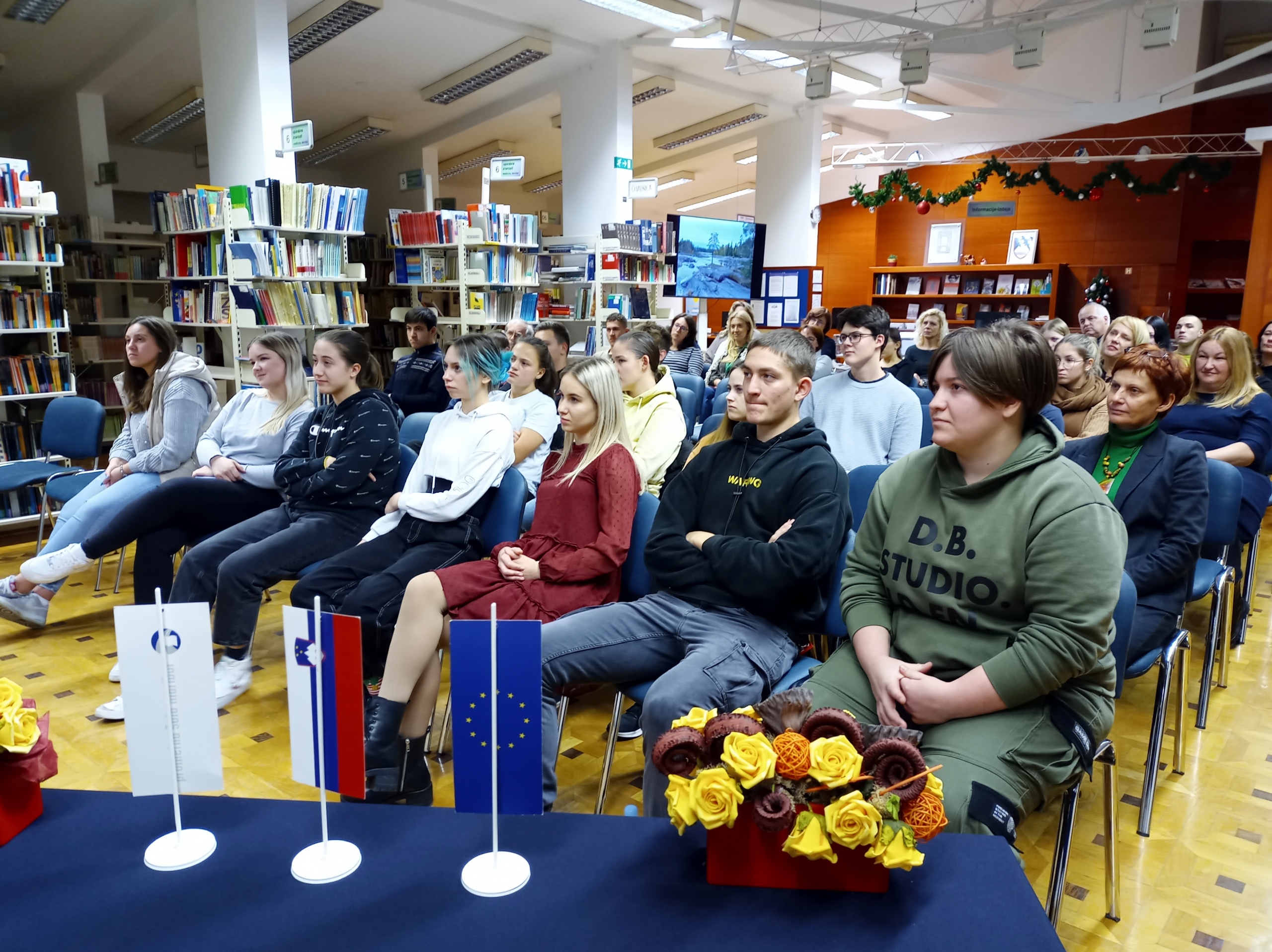7. 12. 2022 so v šolski knjižnici predstavili svojo mednarodno izkušnjo, dogodek pa poimenovali »Na Finsko k Božičku«. Logistični tehniki so predstavili svojo mobilnost, ki so jo opravljali v šoli in podjetju v kraju Kempele, kjer izvajajo program logistika, tehniki varovanja pa so spregovorili o izkušnjah v šoli v Liminki, kjer izvajajo program varovanje ter predstavili praktično usposabljanje, ki so ga opravljali v podjetju Securitas. Skupaj so spoznavali deželo in ljudi, krepili medkulturno zavedanje, izpopolnjevali svoje komunikacijske veščine v tujem jeziku ter pridobili izkušnje o življenju in delu v skupini. Krajši čas sta bila z njimi tudi učitelja, ki sta opravljala senčenje na delovnem mestu.