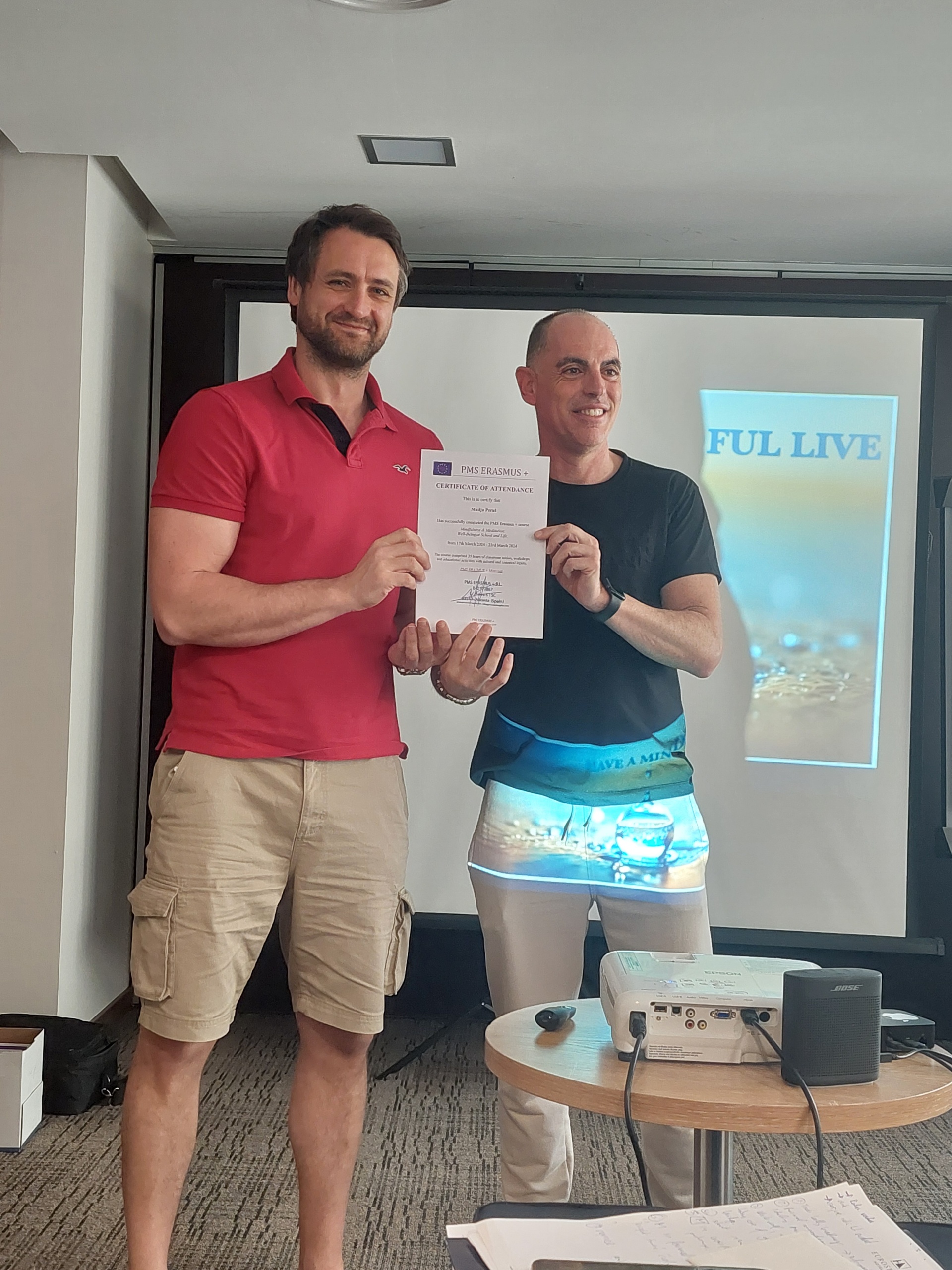 V preteklem tednu se je učitelj fizike in strokovnih predmetov v okviru projekta Erasmus+  udeležil tečaja Čuječnost in meditacija,  ki je potekal med 17. in 23. marcem v mestu Alicante. Ta izobraževalni dogodek je ponudil dragocene vpoglede in orodja, ki bodo imeli dolgoročen pozitiven vpliv tako na učitelje kot na učence in s tem prispevali k bolj harmoničnemu in podpornemu izobraževalnemu okolju.