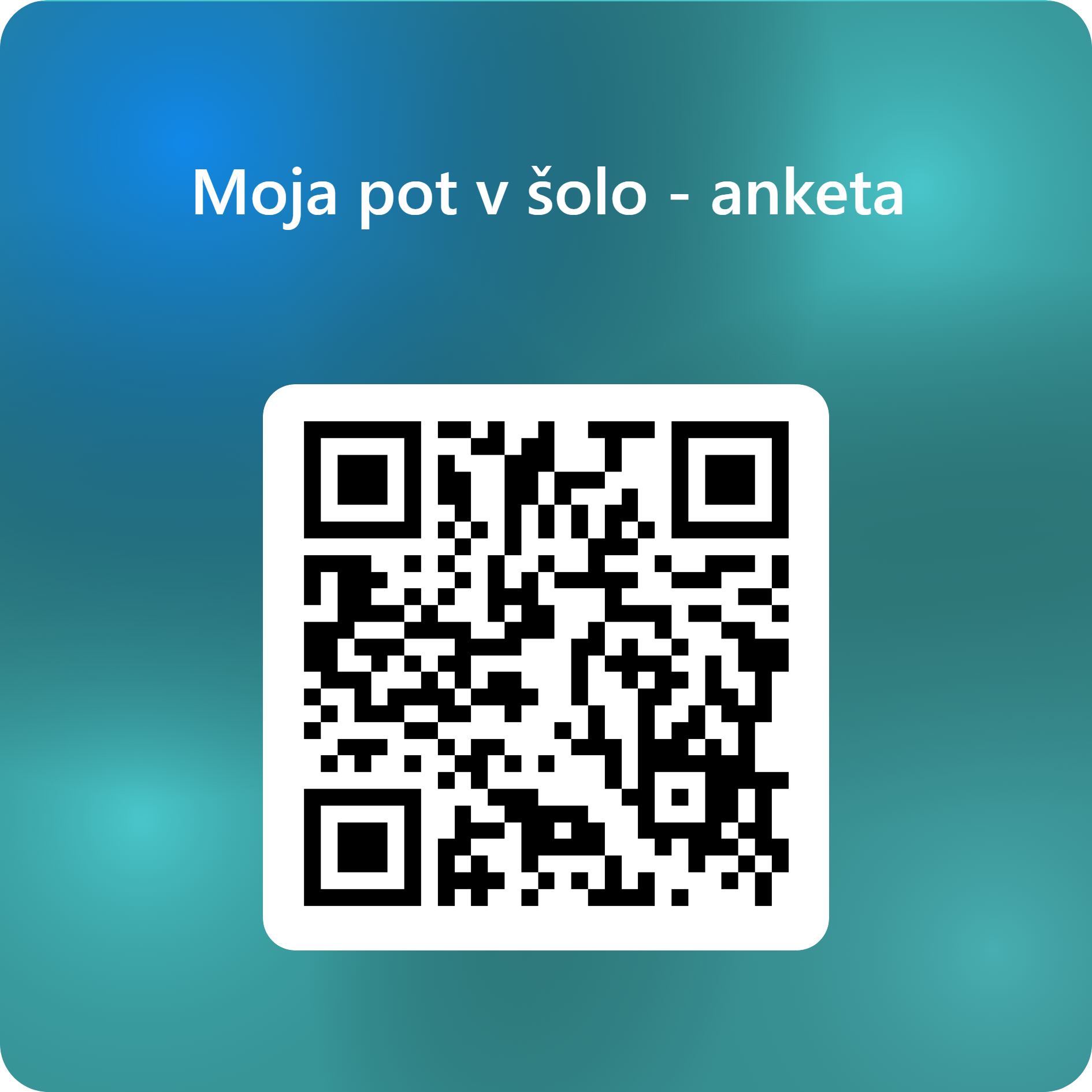 Anketa – Moja pot v šolo Na spodnji povezavi vas čakata anketa in QR koda: https://forms.office.com/e/BdGz4VLP43
