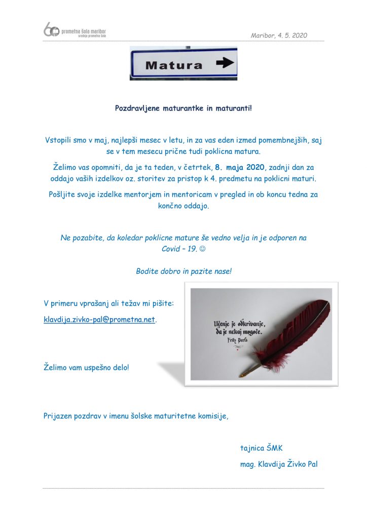 OBVESTILO ZA MATURANTE