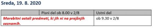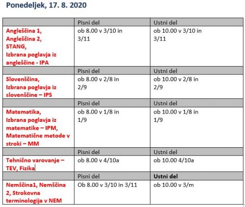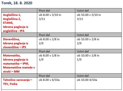 Razpored popravnih izpitov – jesenski rok 2020