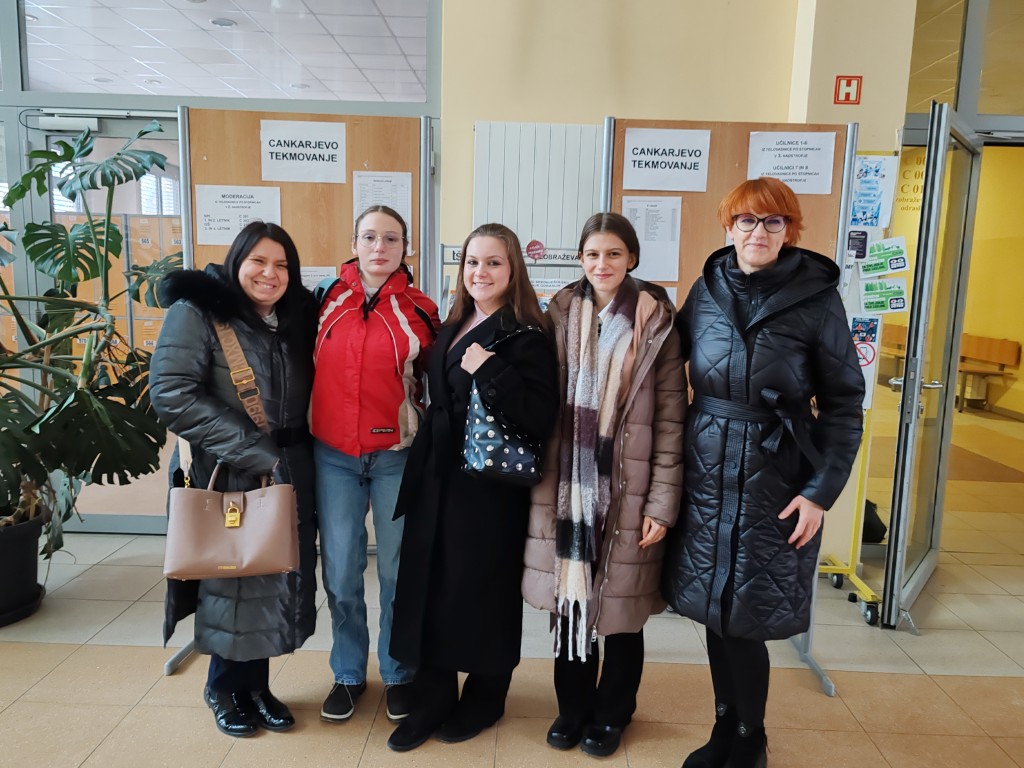 V torek, 20. januarja 2026, je na TŠC Maribor potekalo regijsko tekmovanje iz slovenščine za Cankarjevo priznanje, ki spodbuja poglobljeno branje, razmišljanje in ljubezen do maternega jezika. V spremstvu mentoric so se tekmovanja udeležile tri dijakinje naše šole: Žana Gorinšek, 1. c (mentorica: prof. Lucija Hvalič), Klarisa Hriberšek, 2. d (mentorica: prof. Lucija Hvalič) in Aneja Poštrak, 3. c (mentorica: prof. Petra Krajnc).