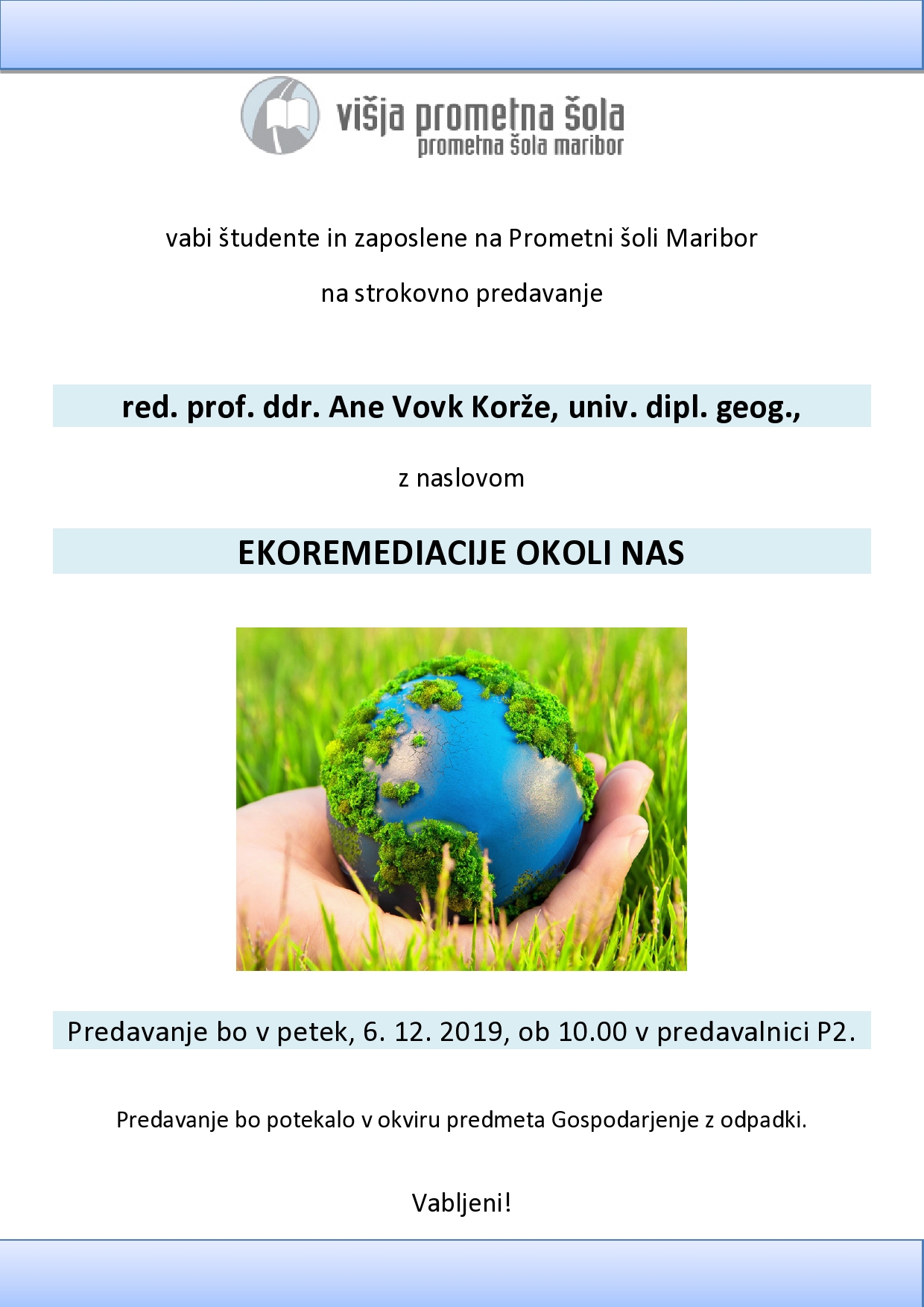EKOREMEDIACIJE OKOLI NAS – strokovno predavanje red. prof. ddr. Ane Vovk Korže, univ. dipl. geog.