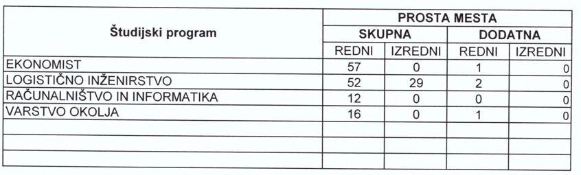 2. prijavni rok 2025/26 – prosta vpisna mesta