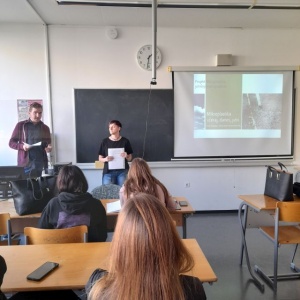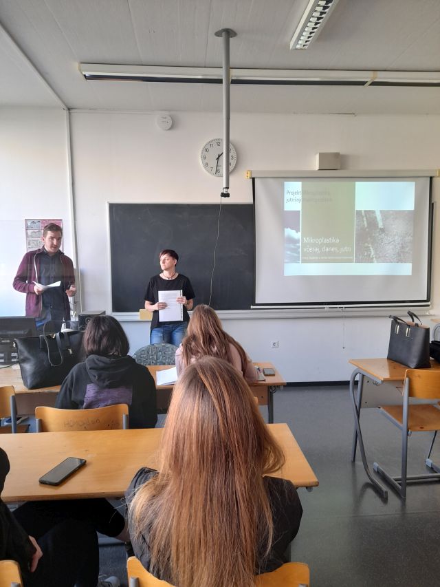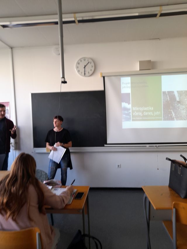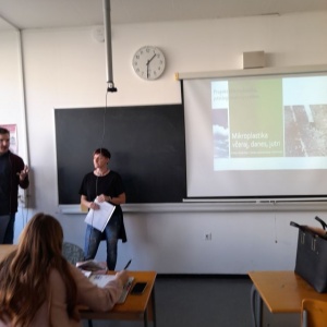 V okviru projekta Mikroplastika, jutrišnji makroproblem so študenti 2. letnika Varstva okolja in komunale predstavili projektno nalogo Mikroplastika včeraj, danes, jutri okoljevarstvenim tehnikom na Srednji gradbeni šoli in gimnaziji Maribor.