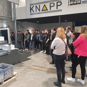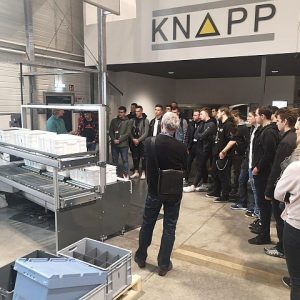 Po uvodnem pozdravu predstavnikov podjetja so si ogledali različne produkte, ki jih kot logistične rešitve za podjetja razvija podjetje Knapp AG.