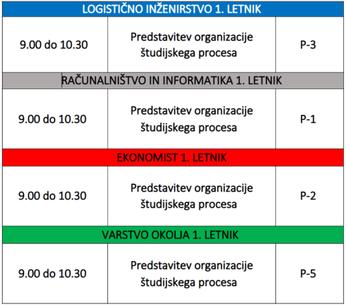 Na uvodnem srečanju vam bomo predstavili organizacijo študijskega procesa, urnik in šolske prostore.